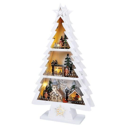 Solight LED dřevěný vánoční stromek s dekoracemi, 13x LED, bílá, 53cm, 2x AA