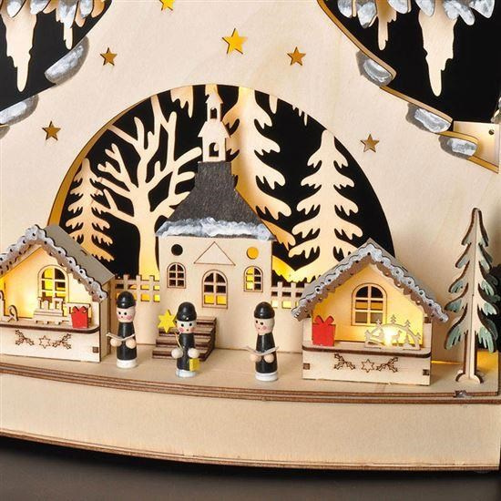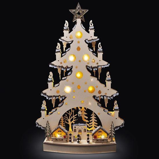 Drevený vianočný stromček s dekoráciami a LED osvetlením