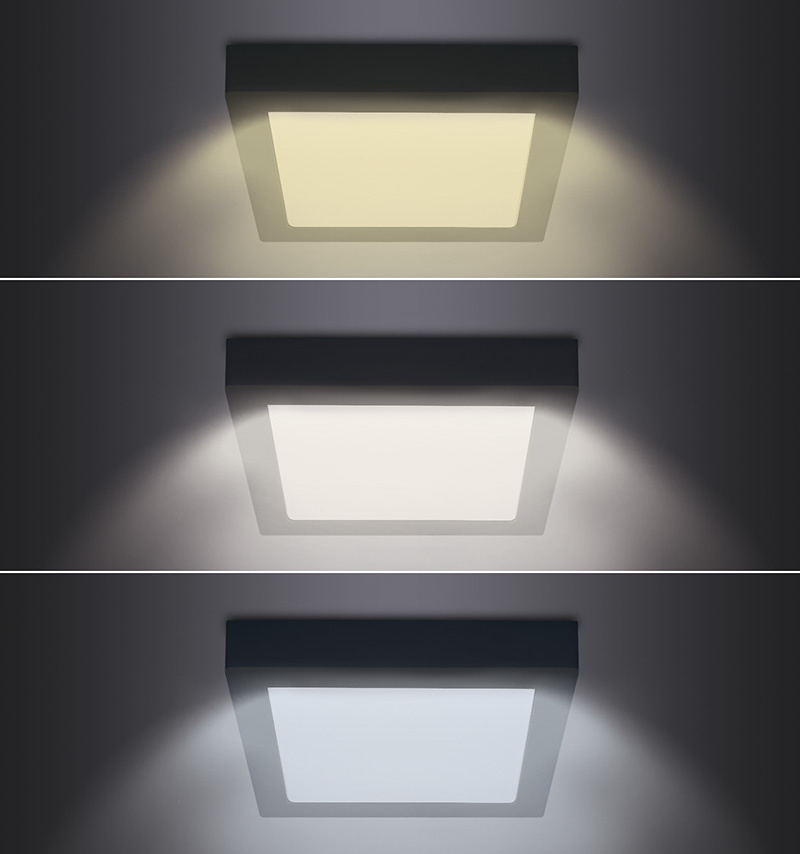 - panel disponuje špeciálnym LED zdrojom s prepínačom, ktorý umožňuje nastavenie teploty svetla (chromatičnosti) 3000K, 4000K alebo 6000K.