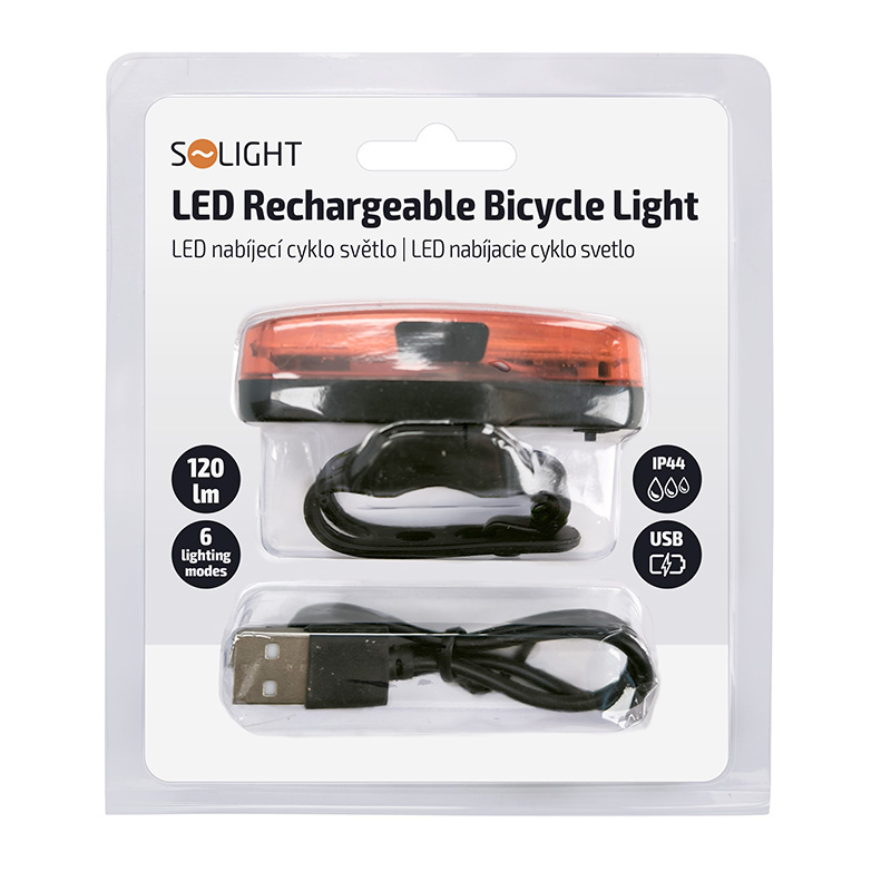 Solight LED nabíjecí zadní cyklo světlo, 3W COB, nabíjecí, Li-Ion