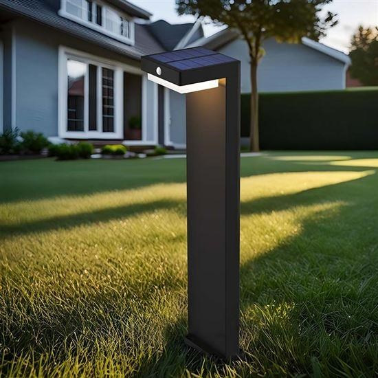 LED stĺpové osvetlenie so solárnym panelom a svetelným a pohybovým čidlom