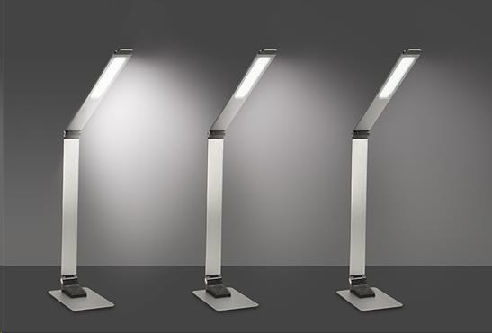 stolná lampička z brúseného hliníka s LED svetelným zdrojom voliteľná teplota svetla (chromatičnosti): 3000K, 4500K, 6000K (teplá, neutrálná a studená biela) stmievateľná: 3-stupňové stmievanie príkon: max. 11W svetelný tok: max. 550lm USB zdírka pre nabíjanie telefónov (5V, 1000mA) USB kábel súčasťou spínanie a zmena jasu dotykom prsta napájanie: vstup: AC 100-240V výstup: DC 12V energetická trieda: A+ LED zdroj nemožno meniť materiál: hliník hrúbka steny: 6mm rozmer: 393 x 120 x 450mm dĺžka napájacieho kábla: 140cm farba: strieborná