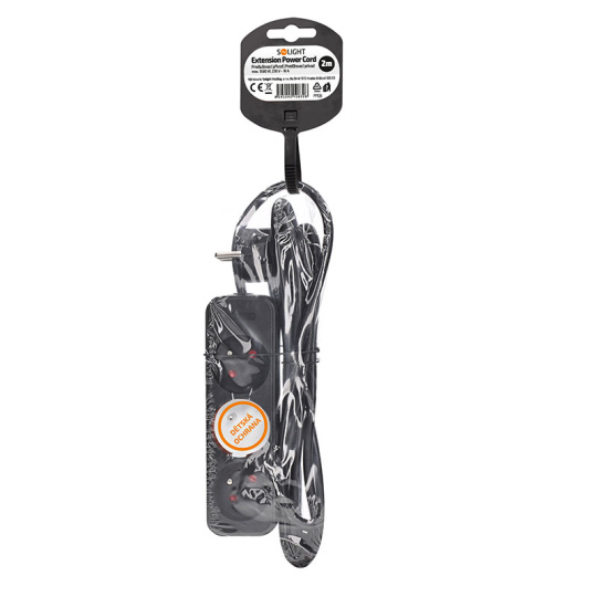 .Solight prodlužovací přívod, 3 zásuvky, černý, 2m