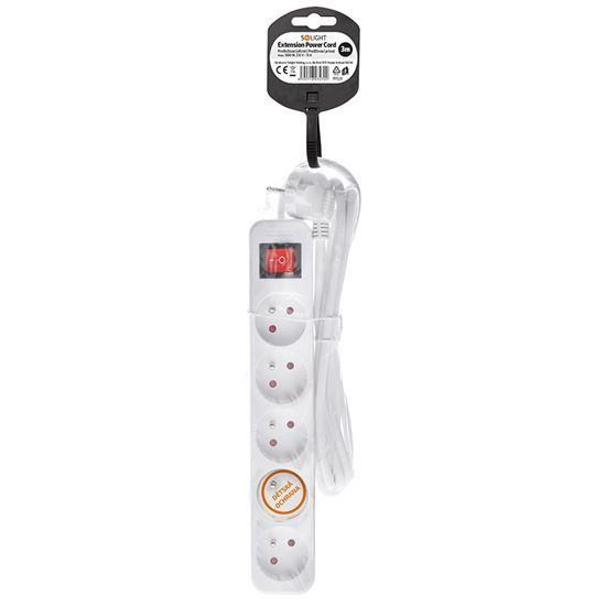 Solight prodlužovací přívod 3m, 5 zásuvek, vypínač, 16A/3680W, PVC, bílý