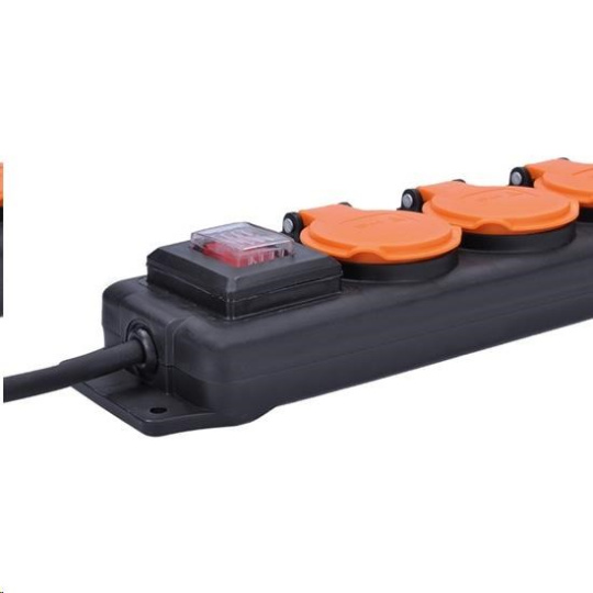 .Solight prodlužovací přívod IP44, 4 zásuvky, gumový kabel, vypínač, venkovní, ,5m
