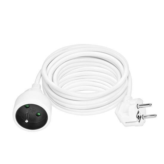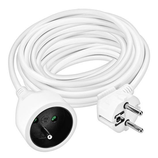 Kompaktný biely predlžovací kábel s dĺžkou 10 metrov a jednou zásuvkou je ideálny na jednoduché predĺženie elektrickej energie v domácnosti, kancelárii alebo dielni. Vhodný na pripojenie samostatného zariadenia mimo dosah pevnej zásuvky.
