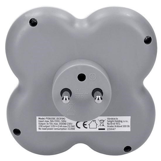 Solight rozbočka, 3x 15A, USB nabíječka A+C, bílá-šedá