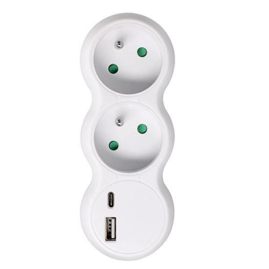 Solight rozbočka s USB A+C nabíječkou, 2 x 10A, bílá