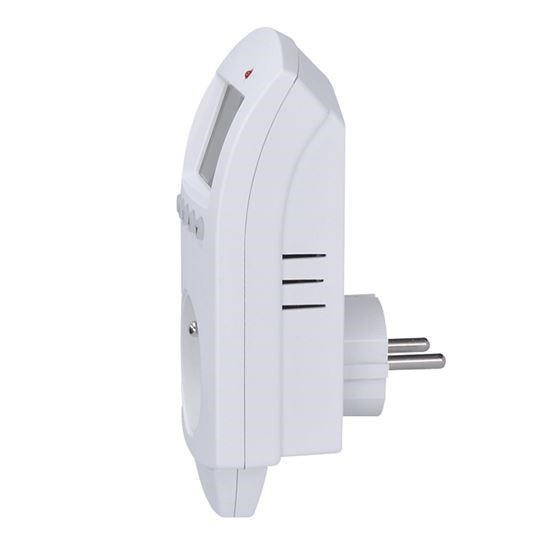 termospínaná programovateľná zásuvka na vnútorné použitie, spína pri dosiahnutí nastavenej teploty možnosť nastavenia rôznych režimov pre vykurovanie alebo chladenie (až 6 režimov na 24h) možnosť nastavenia pre všedný deň a víkend časový spínač, umožňuje zásuvku zapnúť alebo vypnúť automatický režim/režim ručného nastavenia presnosť merania teploty ±1°C rozsah nastavenia teploty 5°C až 35°C vlastná spotreba 0,3W krytí IP20 napájanie: 230V/50Hz, max. záťaž 16A, 3680W