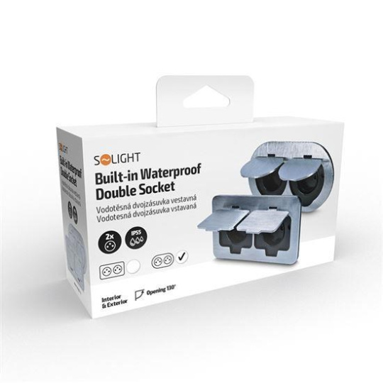.Solight vestavná podlahová dvojzásuvka, IP55, kulaté víčko