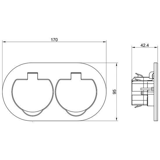 zásuvka dvojnásobná uzemnená 2x (2P+E), okrúhly tvar