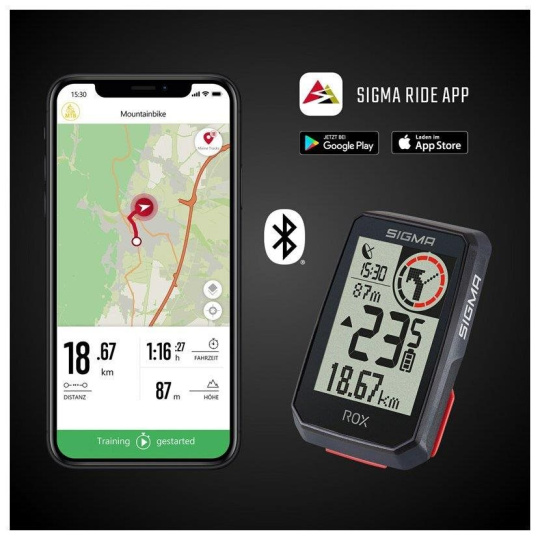 Prostredníctvom Bluetooth je možné posielať údaje z cyklopočítača do smartfónu a v aplikácii SIGMA RIDE ich ukladať a vyhodnocovať. Najdôležitejšie údaje a štatistiky je možné prehľadne zoradiť do farebných dátových polí, rýchlo zobraziť na displeji a pohodlne vyhodnotiť.