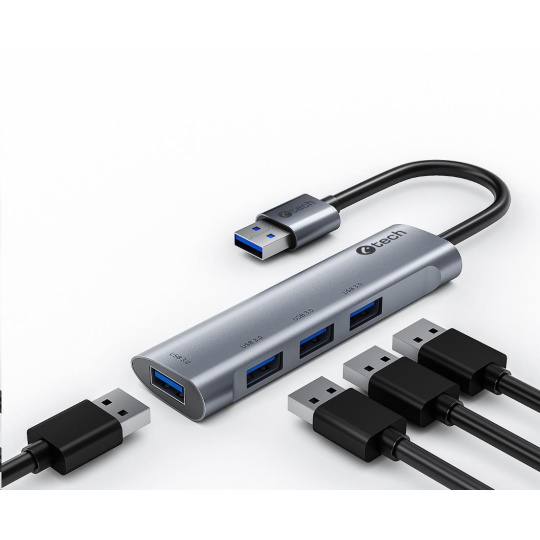 HUB USB C-tech UHB-U3-AL, 4x USB 3.2 Gen 1, hliníkové telo