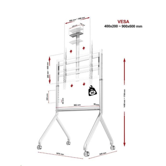 Vysoká nosnosť, skvelá stabilita Stojan na multimediálne tabule a multimediálne dotykové monitory a televízie NB P200W TECHNICKÉ PARAMETRE