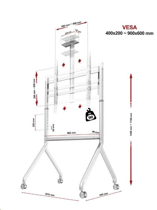 Vysoká nosnosť, skvelá stabilita Stojan na multimediálne tabule a multimediálne dotykové monitory a televízie NB P200W TECHNICKÉ PARAMETRE