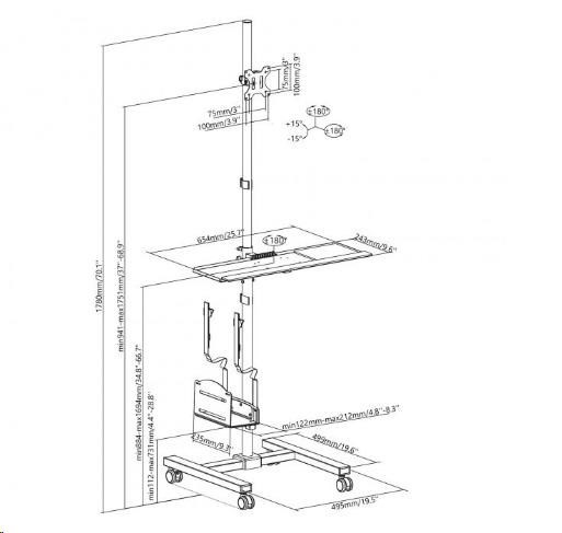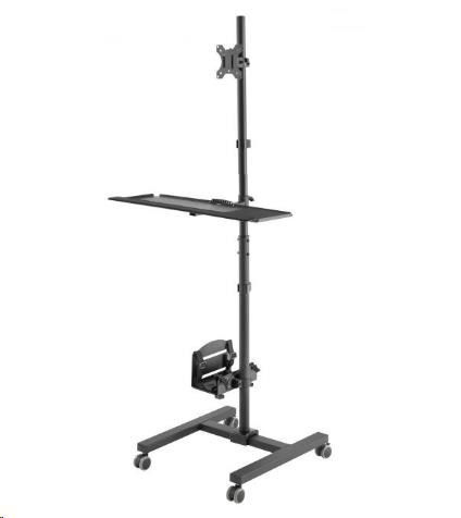 Pojazdný stojan na PC monitor a klávesnicu Fiber Mounts AX793 Profesionálne riešenie pre Vaše mobilné PC pracovisko - mobilný stojan na PC Potrebujete si vytvoriť pojazdné PC pracovisko za čo najlepšiu cenu? Máme pre Vás kompletné riešenie za bezkonkurenčnú cenu - pojazdný stojan s držiakom na PC, držiakom na monitor a policou na klávesnicu. Všetko je pritom ergonomické - nastaviteľná výška, náklon a natočenie monitoru, nastaviteľná výška klávesnice a myši, výškové nastavenie držiaku PC, pojazdové kolieska s aretáciou. Farebné prevedenie čierne, záruka 3 roky. Stojan na PC s držiakom monitoru a policou na klávesnicu a myš - mobilná pojazdná PC pracovňa - Fiber Mounts AX793 Technické údaje: držiak na PC s výškovým polohovaním, nosnosť 8kg polica na klávesnicu a myš s výškovým polohovaním, nosnosť 2kg držiak na monitor 17" až 32" s výškovým polohovaním, nosnosť 10kg držiak monitora podporuje VESA 75x75 a 100x100 / možnosť rozšírenia až na 200x200 otáčanie monitora do strán +/- 180° náklon monitora +/- 15° rotácia monitora +/- 180° celková nosnosť stojanu 20kg pojazdové kolieska s brzdou systém vedenia káblov výborná kvalita farebné prevedenie čierne záruka 3 roky Profesionálna PC pracovňa, pojazdná / mobilná - Fiber Mounts AX793 Stojan na PC, monitor a klávesnicu s myšou AX793 podporuje VESA štandardy pre uchytenie monitorov: VESA 75x75 VESA 100x100 v prípade potreby možnosť zakúpenia rozšírenia na VESA 200x100 v prípade potreby možnosť zakúpenia rozšírenia na VESA 200x200
