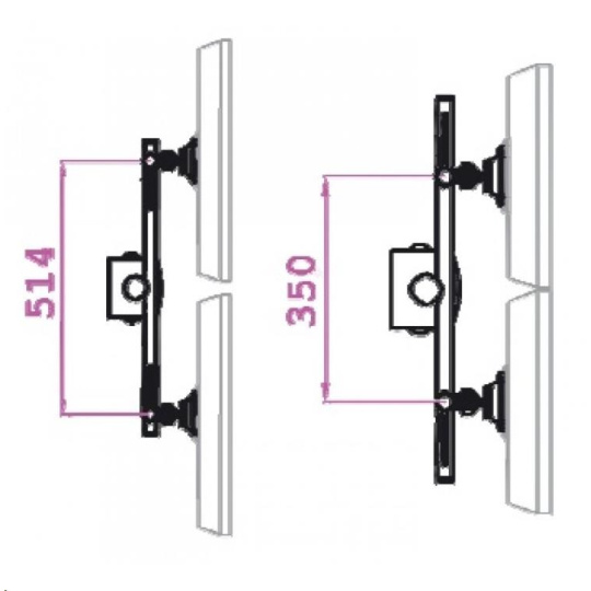 posun obrazovky v osi držiaka - nastavenie vzdialenosti medzi monitormi
