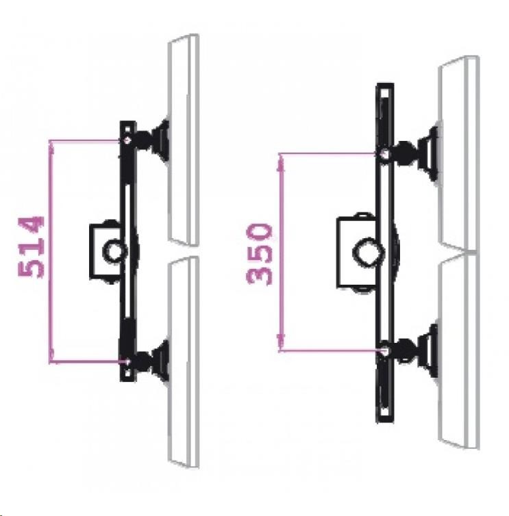 posun obrazovky v osi držiaka - nastavenie vzdialenosti medzi monitormi