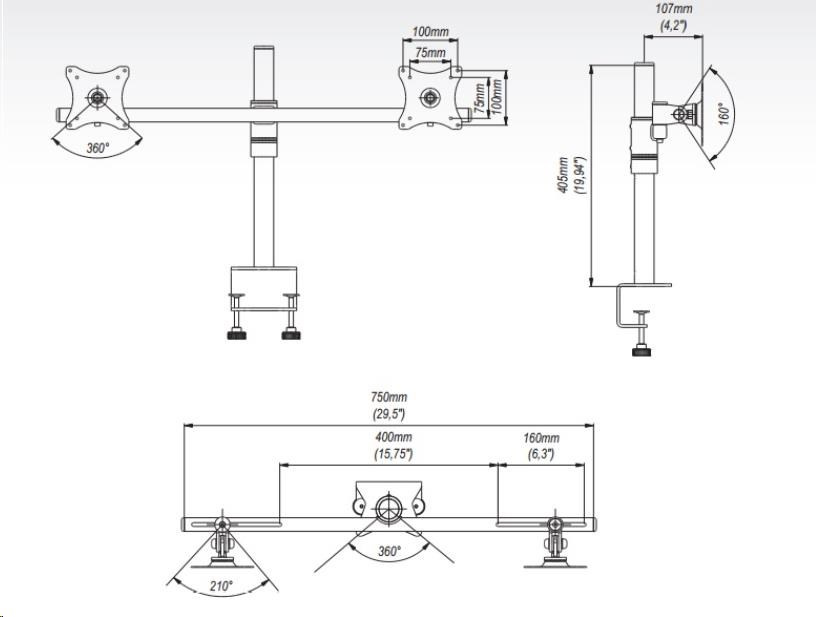 Stolní držák na 2 monitory Edbak SV05