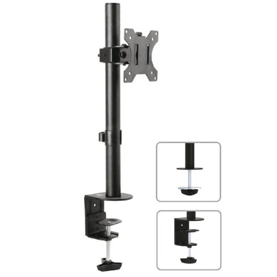 Stolový držiak na monitor Tv Fiber Mounts M7C51 Kvalitný nastaviteľný stolový držiak na monitor alebo Tv 13-32", otočný +/- 90°, sklopný až +/- 45°, výškové nastavenie od stolovej dosky, VESA štandardy 75x75 a 100x100, nosnosť 8kg, záruka 5 rokov Univerzálny stolový držiak na upevnenie monitora alebo televízie s uhlopriečkou 13-32". Držiak podporuje VESA štandardy 75x75 a 100x100, môžete zakúpiť rozšírenie na VESA 200x100 a 200x200. Spoľahlivé a bezpečné upevnenie na stolové dosky, 2 typy stolových úchytov 10-88mm. Polohovanie obrazovky otáčaním do strán až +/- 90°, náklonom až +/- 45° a výškovým nastavením od stolu max. 400mm. Veľmi pevná a bezpečná konštrukcia z ocele. Nosnosť 8kg. Farba čierna, záruka 5 rokov. Kvalitný monitorový a Tv držiak na stôl do kancelárie, pracovne, učebne alebo domácnosti Fiber Mounts M7C51 Technické údaje: maximálne zaťaženie 8kg podporuje VESA štandardy 75x75 a 100x100 možnosť rozšírenia na VESA 200x100 alebo 200x200 odporúčaná uhlopriečka monitora alebo televízie 13 až 32" otáčanie do strán +/- 90° názor až +/- 45° celková výška 443mm výškové polohovanie obrazovky upevnenie na vodorovnú plochu (stôl) hrúbky 10-88mm súčasťou balenia 2 typy upevnenia - na okraj alebo do priestoru bezpečné a spoľahlivé upevnenie obrazovky na stolovú dosku kábla úchytka materiál oceľ farba čierna záruka 5 rokov Stolový držiak na monitor alebo televíziu do kancelárie alebo domácnosti Fiber Mounts M7C51 Držiak monitoru Fiber Mounts M7C51 podporuje VESA štandardy: VESA 75x75 VESA 100x100 VESA 200x100 - za príplatok VESA 200x200 - za príplatok Na držiak Fiber Mounts M7C51 je možné upevniť akékoľvek typy a značky monitorov alebo televízií, ktoré podporujú ktorýkoľvek z vyššie uvedených VESA štandardov a ktorých hmotnosť nie je vyššia ako 8kg.