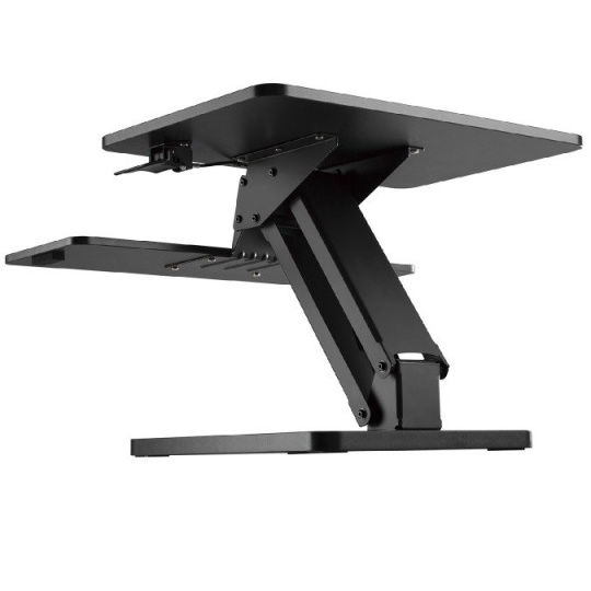 Sit-stand stolový stojan na monitor a klávesnicu Fiber Mounts M8C82 Pracovná stanica pre ľahkú zmenu polohy pre prácu vsedde alebo vestoje, ergonomická, jednoduché nastavenie a polohovanie, stolná, monitory a TV 15-43" Veľmi pevná, odolná a stabilná stolová pracovná stanica na monitor a klávesnicu s myšou. Jednoduchá a rýchla zmena výšky pre prácu vsedde alebo vestoje. Ideálna do kancelárií a podnikov, ale aj domácností. Stolová pracovná stanica do kancelárie alebo domácnosti, na monitor, notebook alebo laptop a klávesnicu, sit-stand - zmena pozície pre prácu vsedde alebo vestoje - Fiber Mounts M8C82 Technické údaje: nosnosť hornej police (na monitor alebo notebook): 13kg nosnosť spodnej police (na klávesnicu s myšou): 2kg na monitory a TV 15-43" rozmer hornej police: 600 x 400 x 16 mm rozmer spodnej police: 660 x 215 x 12 mm výškové polohovanie (od hornej police po stolovú dosku): 160 až 445 mm manuálne výškové polohovanie veľmi jednoduché a rýchle nastavenie výšky vďaka plynovému pístu ideálne pre prácu ako vsedde, tak i vestoje vynikajúca stabilita pevná konštrukcia farebné prevedenie čierne záruka 3 roky Stolový stojan na monitor, notebook alebo laptop a klávesnicu / pracovná stanica do kancelárie so zmenou výšky pre prácu vsedde alebo vestoje - Fiber Mounts M8C82 Stolové stojany na monitory alebo notebooky a klávesnice / pracovné stanice s výškovým polohovaním pre jednoduchú a rýchlu zmenu pracovnej výšky sa stali veľmi žiadaným sortimentom v ergonomických kanceláriách, kde sa výrazne viac dbá na pracovné pohodlie a zdravší životný štýl. Pracovná stanica Fiber Mounts M8C82 patrí medzi tie lacnejšie, avšak kvalitou a spracovaním sa vyrovná aj výrazne drahším pracovným staniciam.