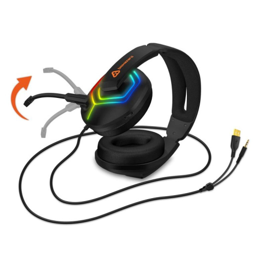 Slúchadlá sú vybavené RGB Rainbow podsvietením, ovládaním hlasitosti, sklápacím mikrofónom a obľúbenými pozlátenými konektormi. V balení nájdete aj adaptér 3.5 mm jack pre maximálnu kompatibilitu.