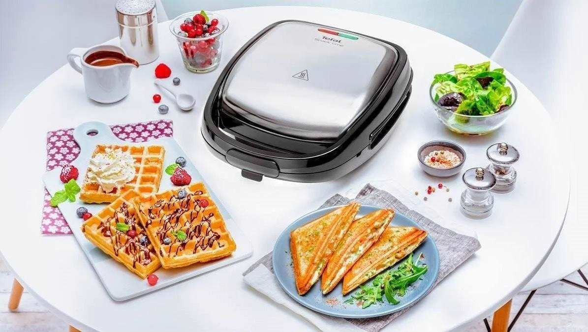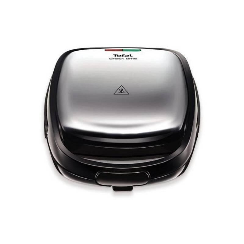 Tefal Snack Time 2 v 1, multifunkčný prístroj s kovovou vložkou na prípravu trojuholníkových toastov a vaflí, predstavuje jedinečné riešenie, ktoré spája sendvičovač a vaflovač pre vždy dokonale sladké aj slané pochúťky. Navyše jeho kovový vzhľad dodá výrobku prémiový dizajn.