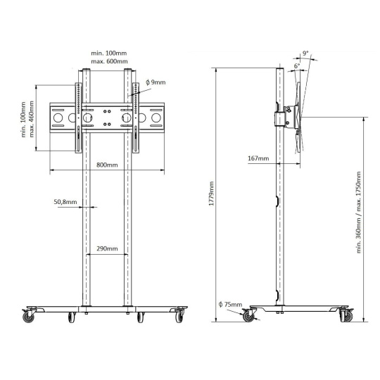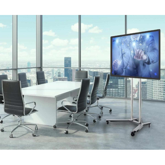 Televízny stojan EDBAK TR1-PWB Mobilný stojan na TV 43" až 75", nastavenie výšky 30-175cm, naklápanie +6°/-9°, VESA 100x100 až 600x400, vedenie káblov, nosnosť 80kg Táto profesionálna veľmi kvalitná televízna stojan je vhodná predovšetkým na prezentácie pomocou televízie alebo monitoru s uhlopriečkou 43" až 75". Nastavenie TV stojanu je premyslené do posledného detailu: nastaviteľná výška obrazovky, nastaviteľný náklon obrazovky, korekcia roviny obrazovky (výborné v prípade nerovnosti podlahy), systém skrytého vedenia káblov, pojazdové kolieska s aretáciou. Stojan je veľmi stabilný a bezpečný. V prípade potreby je možné dokúpiť police na príslušenstvo, hornú polici na kameru, podstavce miesto koliesok. Ideálny pre videokonferencie a prezentácie pomocou obrazovej techniky. Televízny stojan EDBAK TR1-PWB Technické údaje: maximálne zaťaženie 80kg na TV a monitory 43" až 75" VESA štandard 100x100 až 600x400 výška stojanu 180cm nastaviteľná výška TV podľa potreby po celej výške stojanu možnosť náklonu TV +6° / -9° rozmery podstavca 1127x694mm (ŠxH) systém skrytého vedenia káblov pojazdové kolieska s brzdou skvelá stabilita a bezpečnosť možnosť zakúpenia police na príslušenstvo, police na kameru, priehradky na katalógy, pevné podstavce profesionálny výrobok - najvyššia kvalita záruka 5 rokov Stojan na televízie a monitory ideálny na videokonferencie a prezentácie Edbak TR1-PWB Televízny stojan Edbak TR1-PWB podporuje VESA štandardy: VESA 100x100 VESA 200x100 VESA 200x200 VESA 300x200 VESA 300x300 VESA 400x200 VESA 400x300 VESA 400x400 VESA 600x400 maximálna rozteč VESA pre uchytenie TV 600x460 Na televízny stojan EDBAK TR1-PWB je možné zaviesť všetky typy, značky a veľkosti televízorov, ktoré majú hmotnosť do 80kg a ktoré podporujú ktorýkoľvek z vyššie uvedených VESA štandardov. Veľkosť uhlopriečky televízie alebo monitoru nie je podstatná a nehrá žiadnu rolu. Sklenená polička na príslušenstvo ku stojanu Edbak TRS2Horná polička na kameru alebo projektor 250x200mm Edbak CH5 Možnosť dokúpenia príslušenstva: polica na príslušenstvo (až 3ks na stojan) horná polička na kameru pevné podstavce - výmena za pojazdové kolieska
