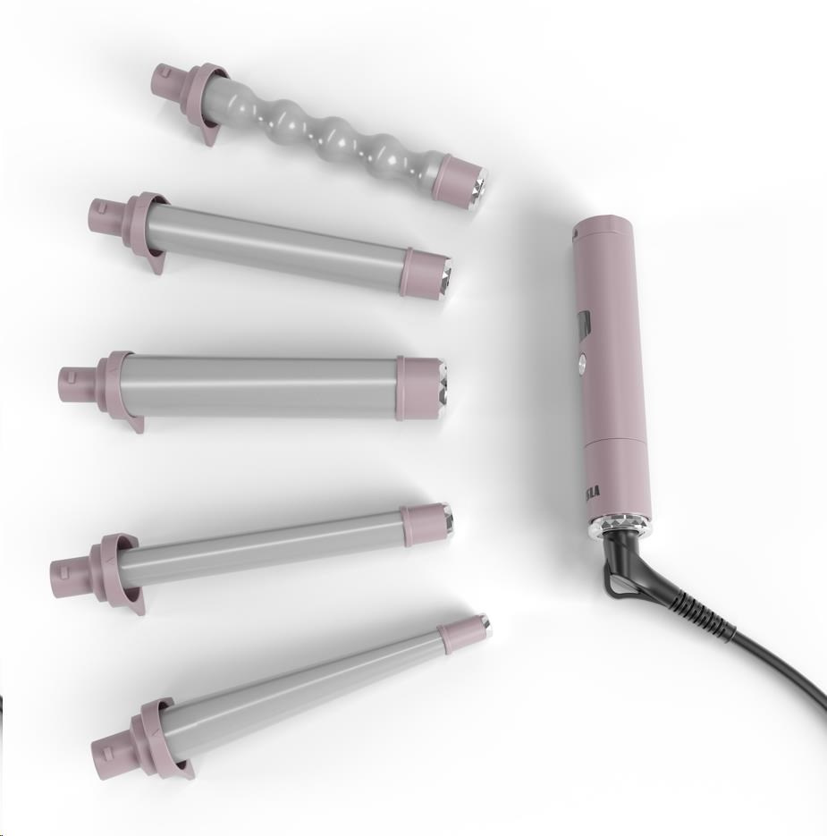Kulma na vlasy Tesla ponúka päť vymeniteľných nástavcov rôznych veľkostí, vďaka ktorým je univerzálnym stylingovým nástrojom vhodným na tvorbu rôznych typov vĺn.