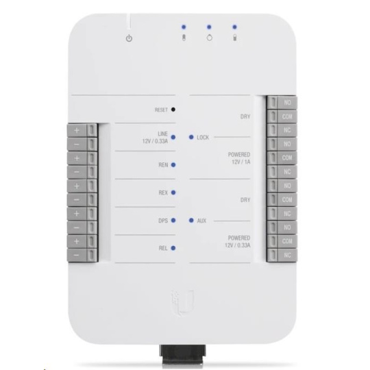 rozbočovač UniFi Access Hub je základným komponentom pri inštalácii prístupového systému UniFi. UniFi Access Hub je inteligentný jednodverový IP kontrolér, ktorý je kompatibilný s väčšinou elektrických zámkov, magnetických zámkov a rôznym 12 V príslušenstvom, ako sú pohybové senzory, tlačidlá a alarmy. Inštalácia je veľmi rýchla a jednoduchá a ponúka jednoduchú správu používateľov, návštevníkov, plánov a úrovní alebo prístupových oprávnení prostredníctvom UniFi Access Controller. Rozbočovač je napájaný prostredníctvom PoE, ktoré nie je súčasťou dodávky.