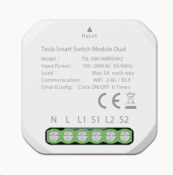Modul Tesla Smart Switch Dual má tú výhodu, že sa pripája pod bežný vypínač v inštalačnej krabici na stene. Získate všetky výhody inteligentného osvetlenia bez toho, aby ste sa museli vzdať pôvodných vypínačov, ktoré môžu dokonale ladiť so zvyškom interiéru.