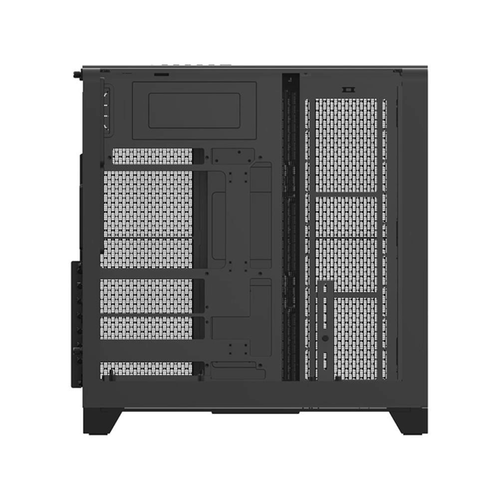 Skrinka View 390 Air Mid Tower je skrinka ATX s bočným a horným panelom z tvrdeného skla, perforovaným predným panelom, otočnými slotmi PCI-E, držiteľom GPU a dvoma zadnými ventilátormi CT120. Pojme až jedenásť ventilátorov 120mm a podporuje 360mm radiátor AIO v prednej časti alebo na strane základnej dosky. Pre zobrazenie systémových informácií v reálnom čase a vylepšené vizuálne efekty je možné pridať voliteľnú sadu 6" LCD obrazovky.