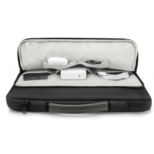 Taška Tomtoc A14 kombinuje súčasné trendy s nadčasovým minimalistickým dizajnom. Zavazadlo tak skvele doplní elegantný oblek aj rifle s mikinou. Taška je navrhnutá tak, aby sa do nej zmestilo všetko, čo počas dňa budete potrebovať. Priestranná predná kapsa ponúka dostatok miesta na príslušenstvo aj ďalšie potreby a vďaka vnútornému členeniu na priehradky a popruhy si vo veciach nájdete organizovaný systém. Sama o sebe je taška veľmi ľahká a mäkká rúčka z veganskej kože vám zabezpečí pohodlné nosenie aj na dlhšie vzdialenosti.Súhrn vlastností