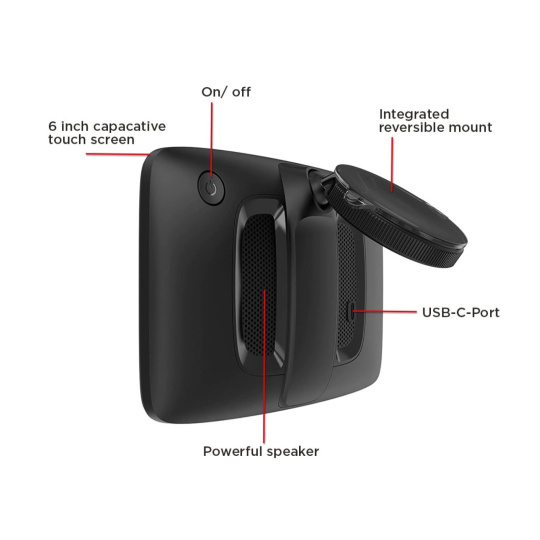 Sledujte svoju trasu na 6" dotykovej obrazovke s vysokým rozlíšením pre bezpečnejšiu jazdu a vďaka výkonnému reproduktoru ľahko počujete každý signál. Výkonný reproduktor zabezpečí zreteľné hovorené pokyny.