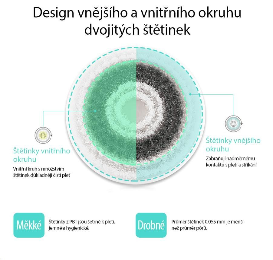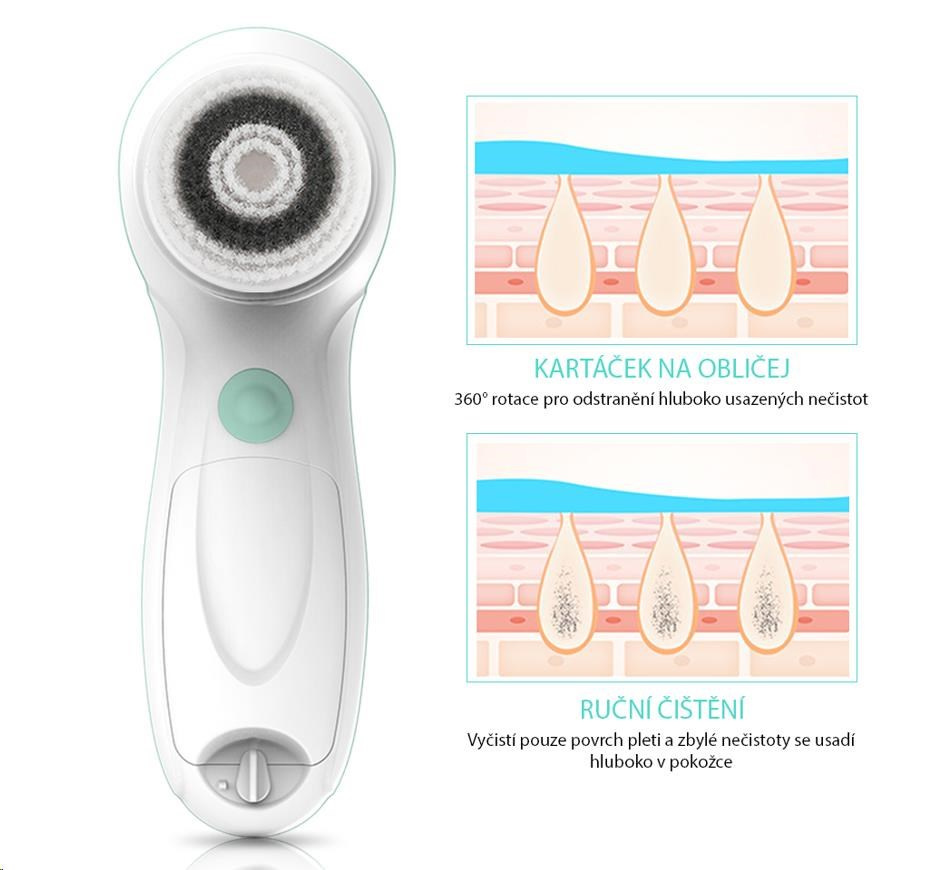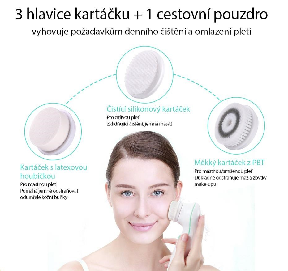 - Silikónová kefka pre citlivú pokožku, masíruje pleť a zlepšuje krvný obeh