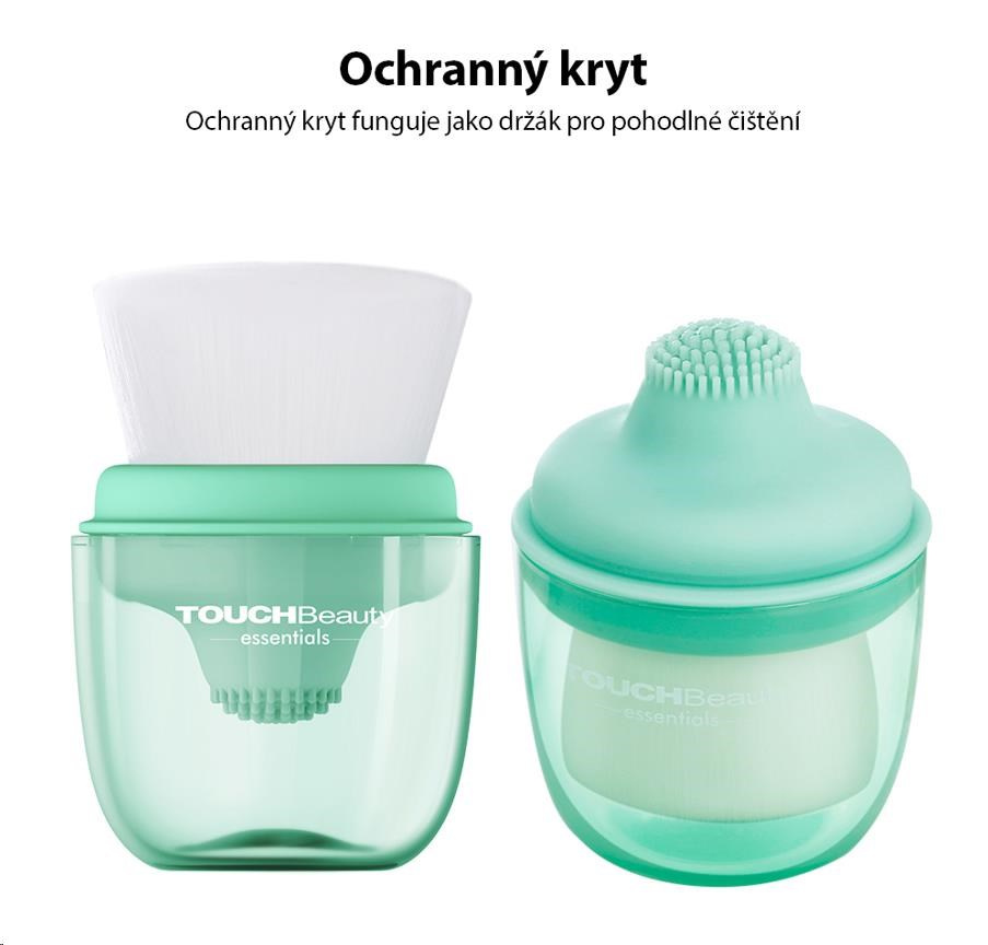Obojstranná kefka TOUCHBeauty 1762 je ideálny pomocník pre čistenie pleti (nielen) na cestách. Z jednej strany ponúka kefku s dokonca 350 000 ultra jemnými štetinkami pre čistenie tváre a pre hĺbkové čistenie, z druhej strany silikónovú kefku v tvare kvapky, ktorá bola špeciálne navrhnutá pre čistenie tváre a čela. Dômyselná konštrukcia umožňuje používať úložný kryt aj ako stojan pre kefku. Zároveň ho na cestách perfektne chráni.