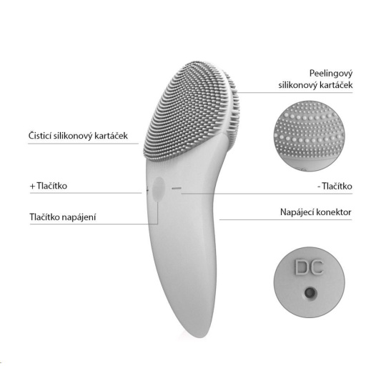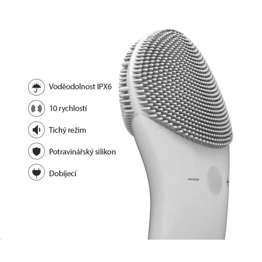 Každodenná čistiace plocha je vybavená jemnými silikónovými dotykovými bodmi, ktoré čistia tvár bez poškodenia pokožky.
