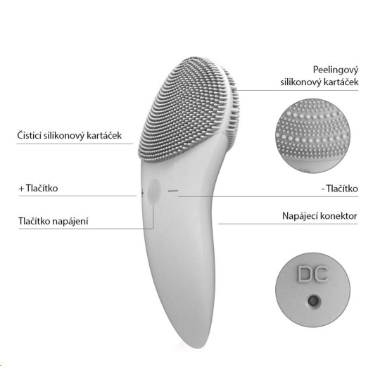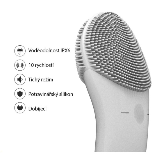 Každodenná čistiace plocha je vybavená jemnými silikónovými dotykovými bodmi, ktoré čistia tvár bez poškodenia pokožky.