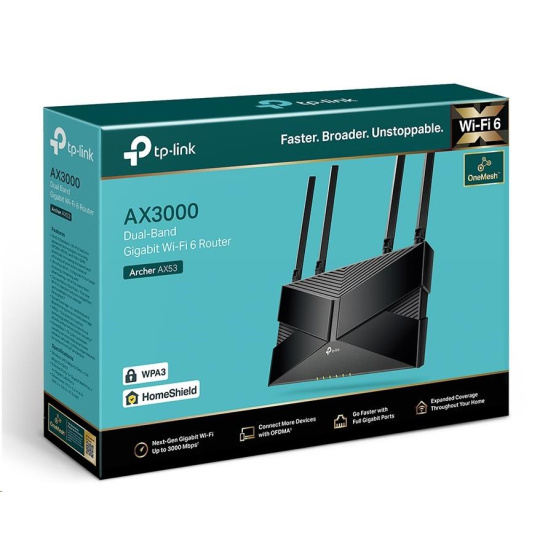 TP-Link Archer AX53 OneMesh/EasyMesh WiFi6 router (AX3000, 2,4GHz/5GHz, 1xGbEWAN, 4xGbELAN)