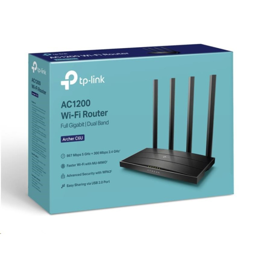 TP-Link Archer C6U OneMesh/EasyMesh WiFi5 router (AC1200, 2,4GHz/5GHz, 4xGbELAN, 1xGbEWAN, 1xUSB2.0)