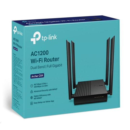 TP-Link Archer C64 OneMesh/EasyMesh WiFi5 router (AC1200, 2,4GHz/5GHz, 4xGbELAN, 1xGbEWAN)