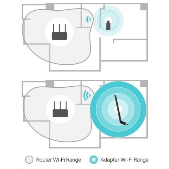 - Vysoce zisková anténa: Anténa s vysokým ziskom až 5dBi výrazne zvyšuje silu prijmu a prenos signálu USB adaptéra