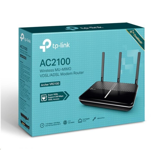 TP-Link Archer VR2100 OneMesh WiFi5 VDSL2/ADSL router (AC2100, 2,4GHz/5GHz, 3xGbELAN,1xGbELAN/WAN,1xRJ11, 1xUSB3.0)