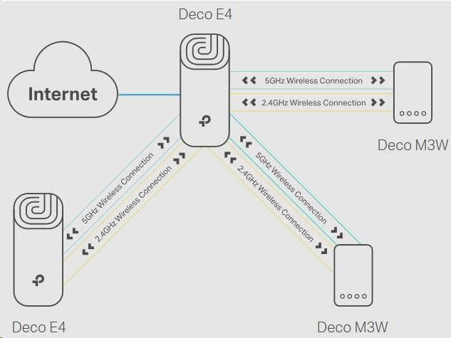 - Deco E4 poskytuje rýchle a stabilné pripojenie rýchlosťou až 867 Mb/s a spolupracuje s hlavnými poskytovateľmi internetových služieb (ISP) a modemom.