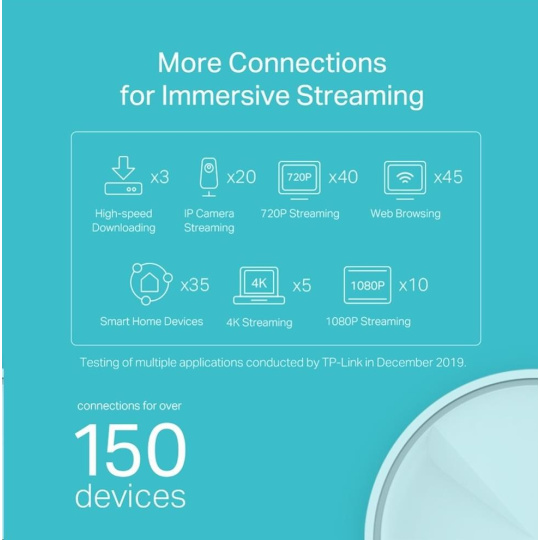 - Absolútna bezpečnosť: Šifrovanie WPA3 a TP-Link HomeCareTM poskytujú prispôsobené funkcie, vrátane rodičovských kontrol, antivírusov a kvality služieb (QoS), aby bol zabezpečený bezpečnejší online prevádzka.