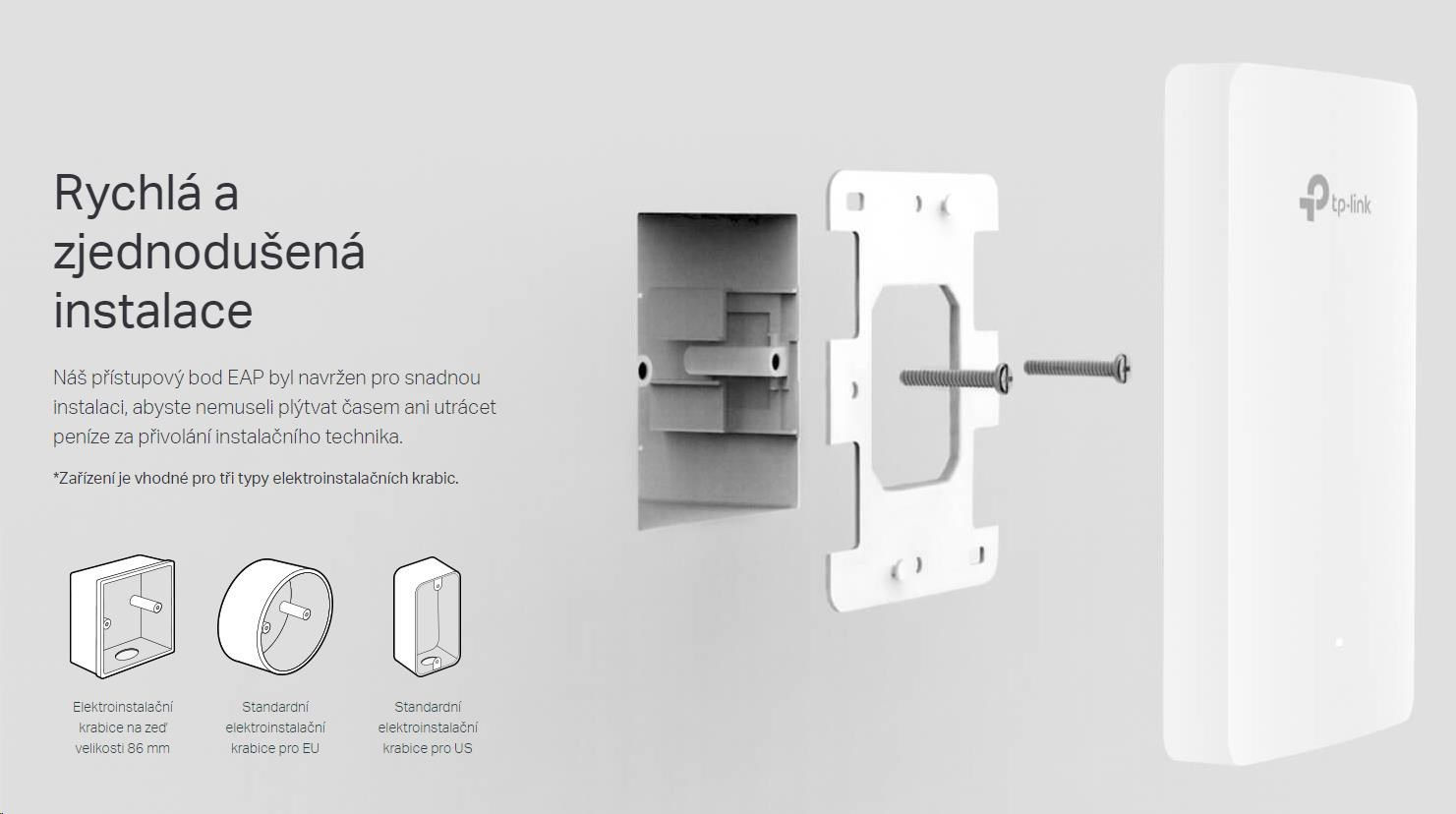 | Package Contents | • 5x AX1800 Wall Plate WiFi 6 Access Point EAP615-Wall • Inštalačný sprievodca • 5x Montážne sady |