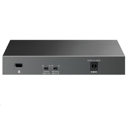 | Advanced Features | • Extend Mode Button (Porty 1–4, až 250 m PoE napájanie a prenos dát) • PoE Auto Recovery Button (Porty 1-4) • Kompatibilný s IEEE 802.3af/at PD • Automatické učenie MAC adries a automatické červenanie • IEEE 802.3x Flow Control • Green technológia |
