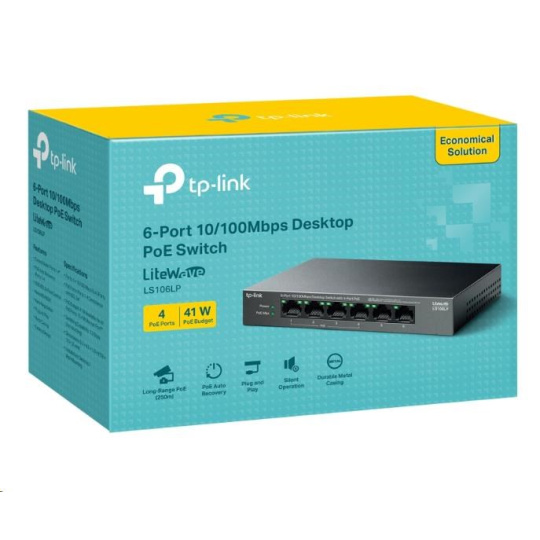 TP-Link LiteWave switch LS106LP (6x100Mb/s, 4xPoE, 41W, fanless)