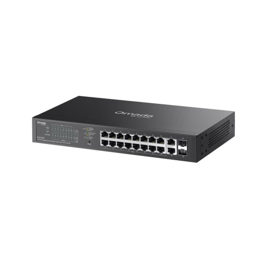 | Rozhranie | • 18× 10/100/1000 Mbps PoE+ RJ45 portov (16× 802.3af/at-kompatibilných PoE+) • 2× Gigabit SFP zásuvky • Automatická-negociácia/Auto MDI/MDIX |