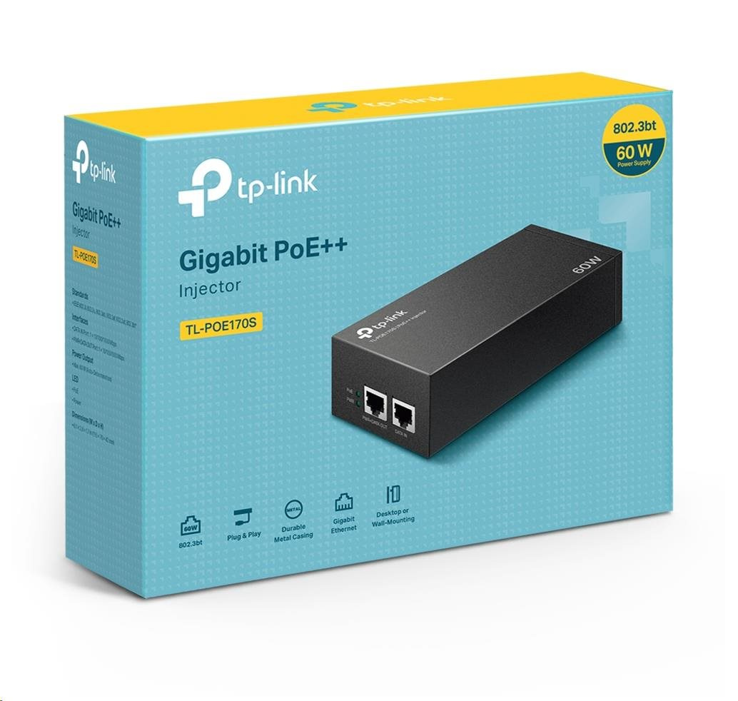 PoE++ injektor TL-POE170S plne vyhovuje štandardom IEEE 802.3af/at/bt* a poskytuje napájací výkon až 60W. Môže jednoducho rozšíriť vašu sieť tam, kde nie je žiadne elektrické vedenie alebo zásuvka na pripojenie zariadení, ako sú PTZ IP kamery, Wi-Fi prístupové body, LED atď.